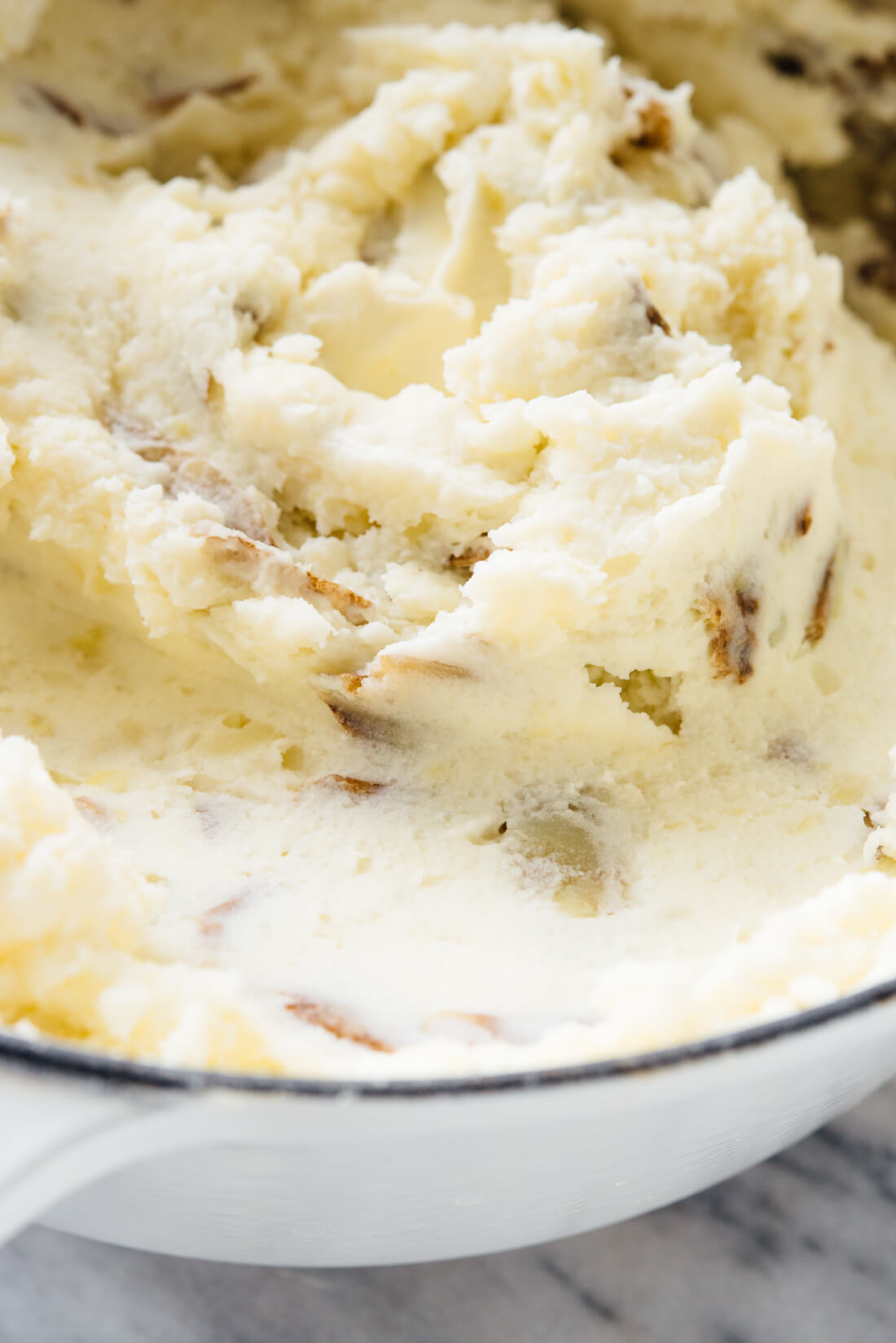 My familyโ€™s favorite mashed potatoes recipe! These mashed potatoes are creamy, rich and tangy, thanks to the cream cheese and sour cream. You can make these mashed potatoes ahead of time, too (see the final step for details). Recipe yields 8 large or 12 medium servings; I believe you could successfully halve the recipe for a smaller crowd.